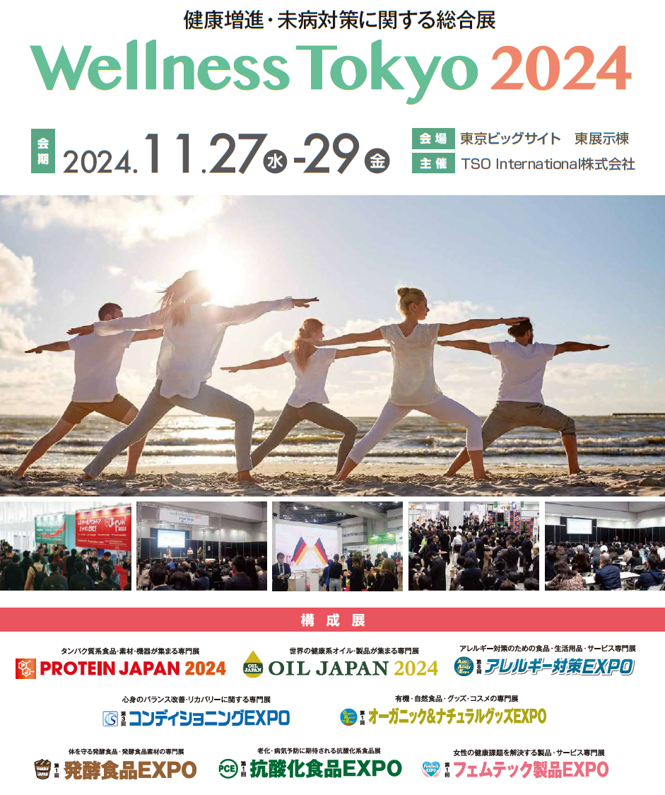 2024年11月に開催される「Wellness Tokyo 2024」に出展いたします。開催日と会場は下記の通りとなります。
